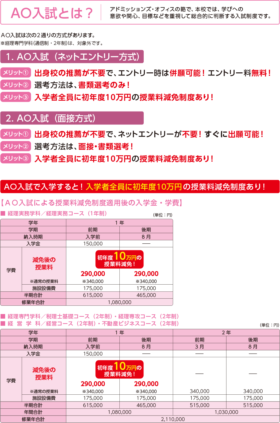 POINT! 初年度授業料10万円減免制度あり